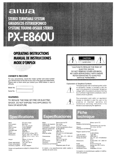 AIWA PX-E860U Anleitung Englisch