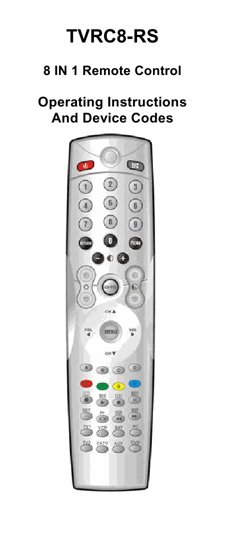 MASTERPLUG TVRC8-RS (Codes included) Guía del usuario Inglés