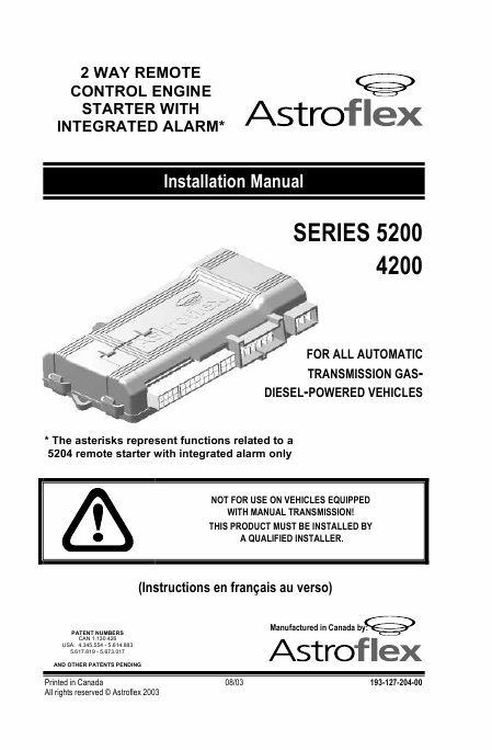 ASTROFLEX AstroStart 4200 Series Installation Manual English