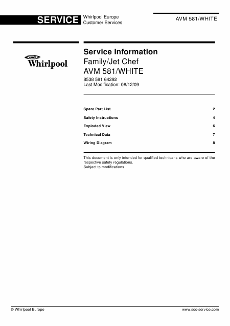 Download WHIRLPOOL AVM 581/WHITE (AVM581) Service Manual English (8 Pages) 15.90 EUR