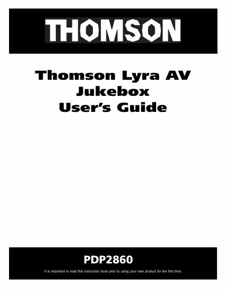 Download THOMSON Lyra PDP2860 Users Guide English (40 Pages) 12.90 EUR