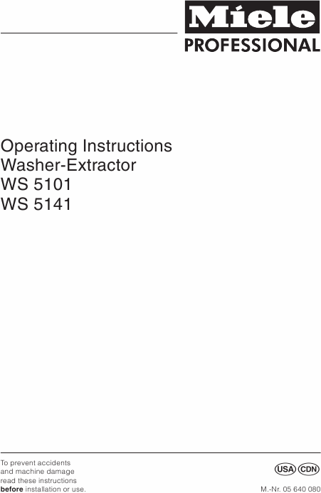 MIELE WS 5101 Guía del usuario Inglés
