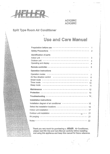 HELLER ACK25RC Guía del usuario Inglés