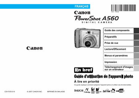 Baixar CANON PowerShot A560 Guia de Introdução Francês (35 Pages) 12.90 EUR