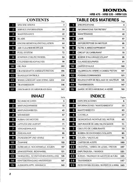 Scaricare HONDA HRB 536 (HRB536) Manuale di servizio Spagnolo (273 Pagine) 39.90 EUR