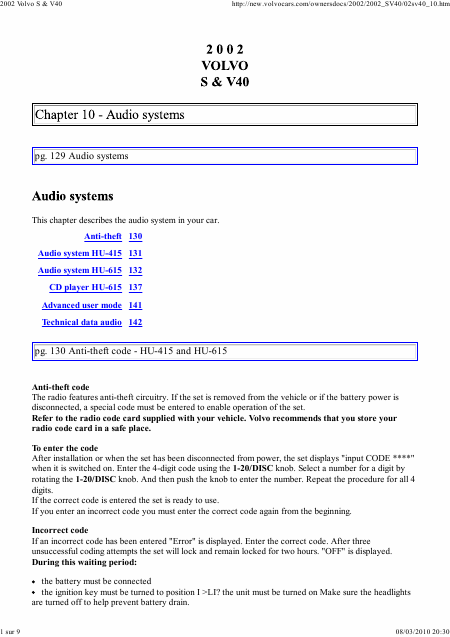 Scaricare VOLVO HU-615 Istruzione Inglese (9 Pagine) 15.90 EUR