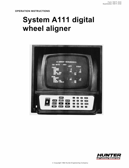 HUNTER A111 Istruzione Inglese