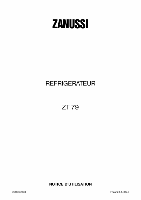 Baixar ZANUSSI ZT 79 Instruções Francês (20 Pages) 12.90 EUR