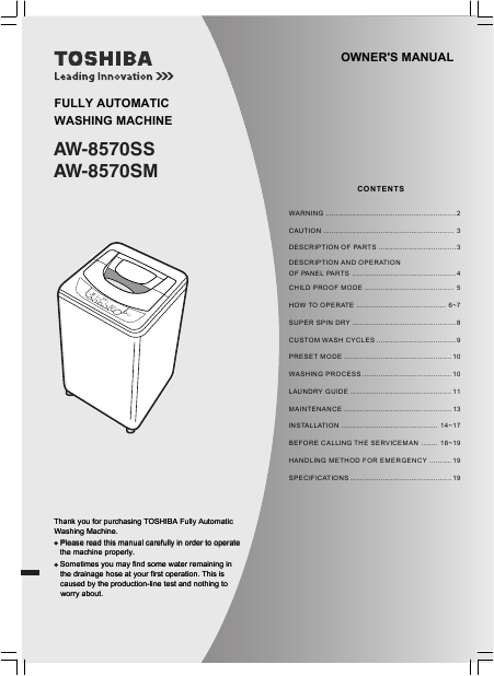 TOSHIBA AW-8570SS Mode emploi Anglais