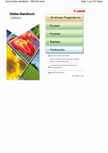 Telecharger CANON MG2100 Pixma Mode emploi Allemand (731 Pages) 15.90 EUR