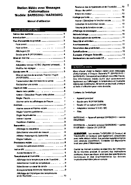 Baixar OREGON SCIENTIFIC BAR933HG / BAR936HG Instruções Francês (0 Pages) 12.90 EUR