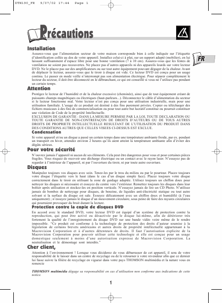 THOMSON DTH190 Instruções Francês