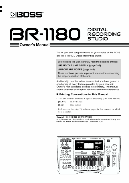 BOSS BR-1180 Users Guide English