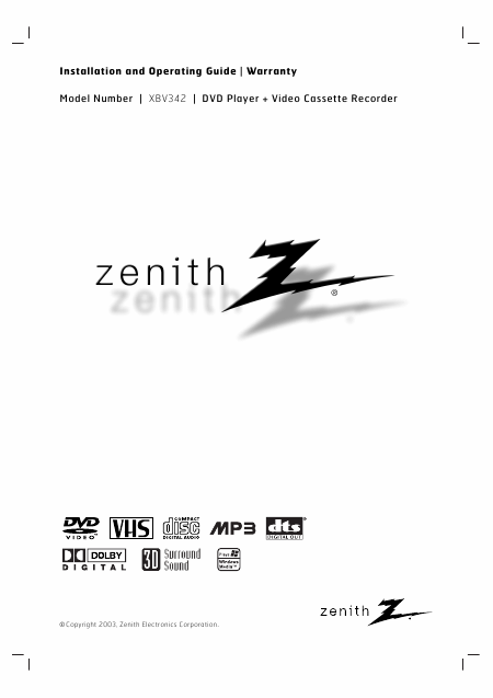 ZENITH XBV342 Users Guide English