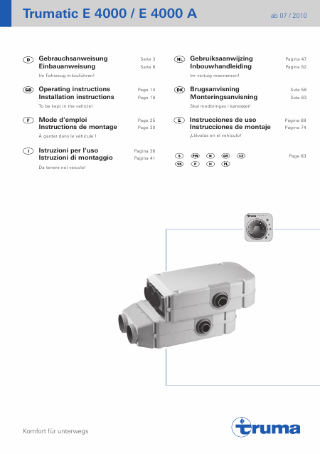 Download TRUMA Tumatic E 4000 Installationsanweisungen Spanisch (14 Seiten) 15.90 EUR