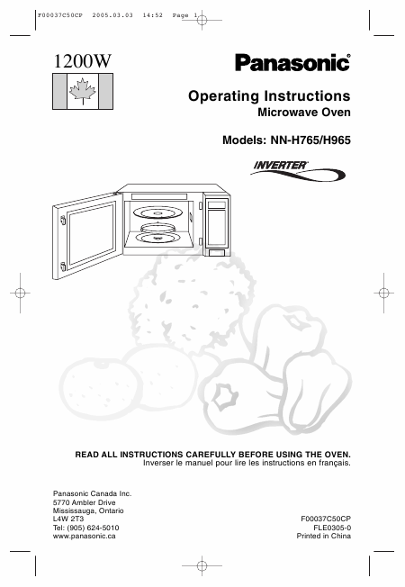 PANASONIC NN-H765 Anleitung Englisch