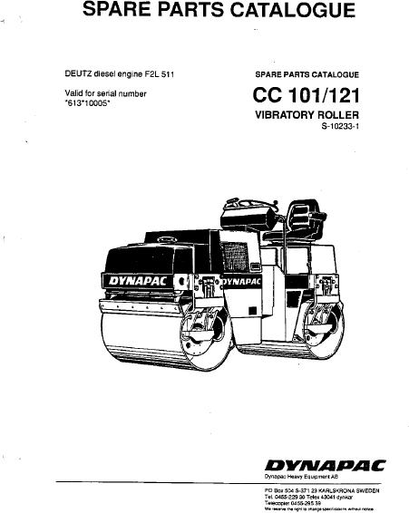 DYNAPAC CC121 Liste pieces detachees Anglais