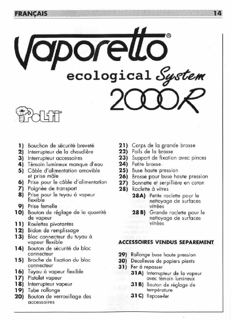 VAPORETTO 2000R Users Guide French