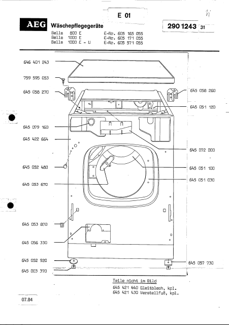 Telecharger AEG Bella 800 E Liste pieces detachees Allemand (10 Pages) 39.90 EUR