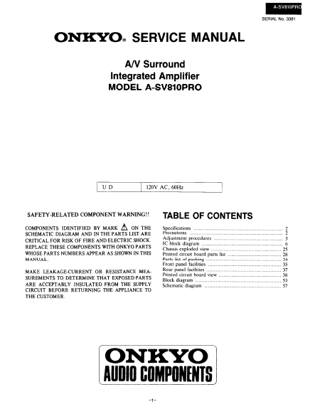 Download ONKYO A-SV810PRO Service Manual English (35 Pages) 15.90 EUR