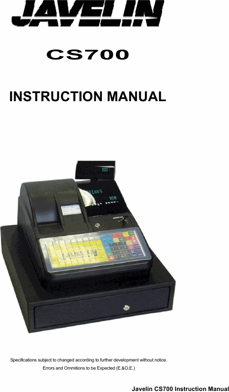 Baixar JAVELIN CS700 Instruções Inglês (87 Pages) 39.90 EUR