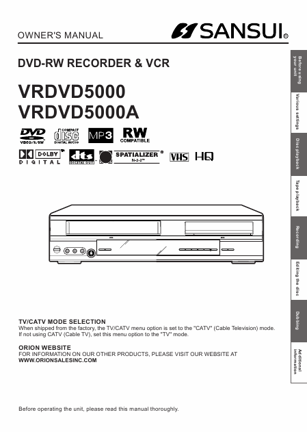 Baixar SANSUI VRDVD 5000 (VRDVD5000) Instruções Inglês (88 Pages) 39.90 EUR
