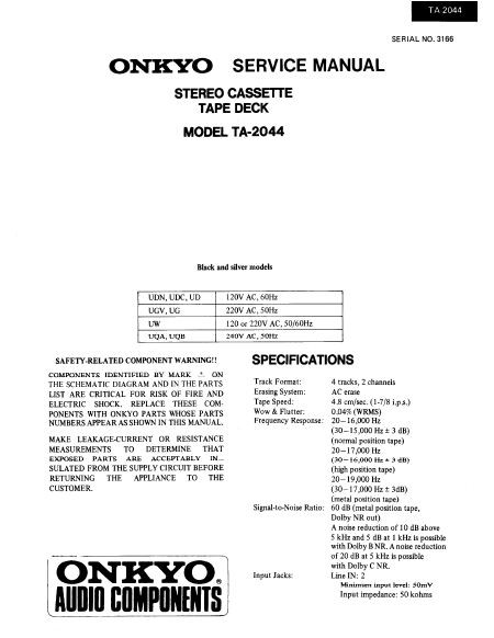 Telecharger ONKYO TA-2044 Manuel de service Anglais (15 Pages) 15.90 EUR
