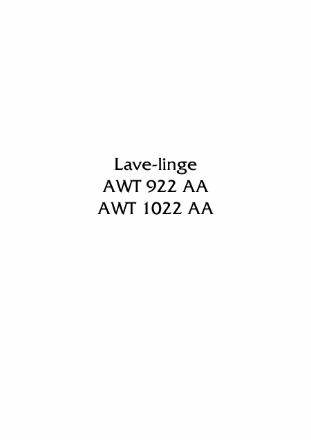 Descargar ARTHUR MARTIN AWT922AA Guía del usuario Francés (16 Páginas) 12.90 EUR