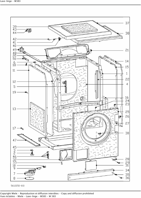 MIELE W 383 Lista de piezas de repuesto Francés