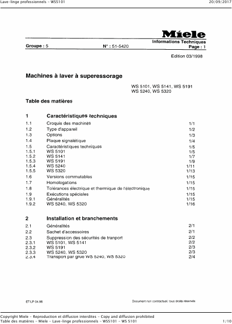 Descargar MIELE WS 5101 Manual de taller Francés (321 Páginas) 59.90 EUR