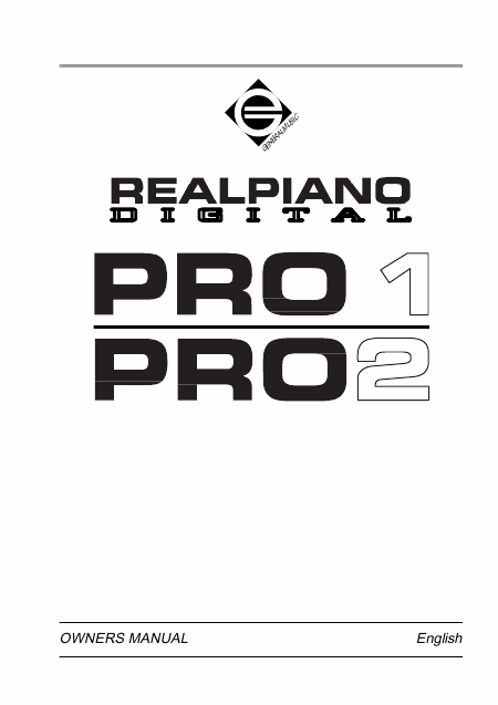 GENERAL MUSIC PRO2 Realpiano Mode emploi Anglais