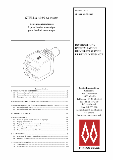 Download FRANCO-BELGE Stella 3035 Installation Manual French (12 Pages) 15.90 EUR
