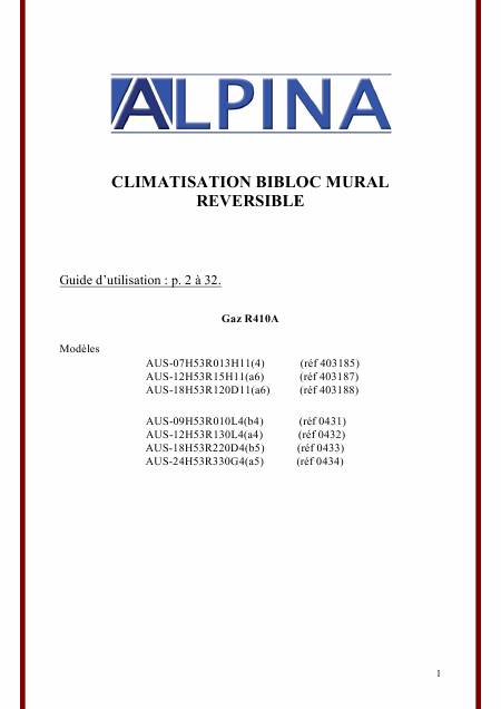 Download ALPINA AUS-24H53R330G4 (a5) Installationsanweisungen Französisch (33 Seiten) 12.90 EUR
