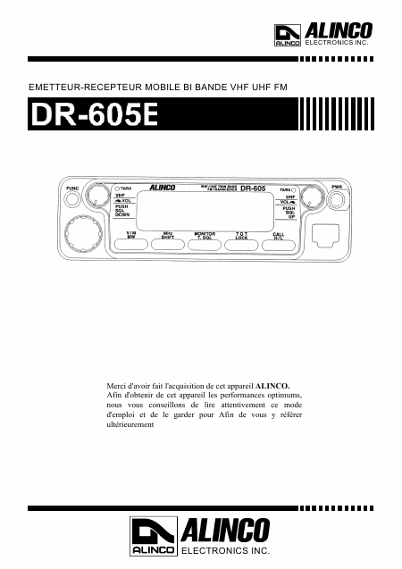 Scaricare ALINCO DR-605E Istruzione Francese (56 Pagine) 39.90 EUR