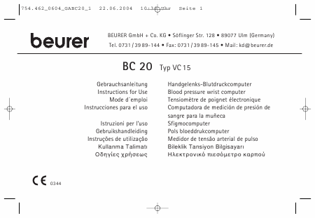 Download BEURER BC 20 Typ VC 15 Users Guide French (10 Pages) 12.90 EUR