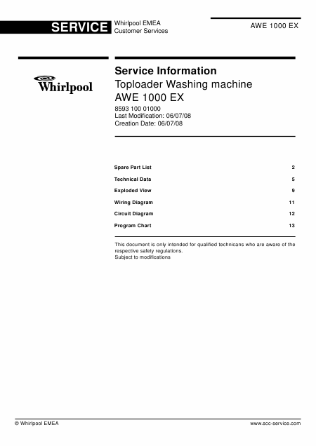 Descargar WHIRLPOOL AWE 1000 EX Manual de taller Inglés (18 Páginas) 15.90 EUR