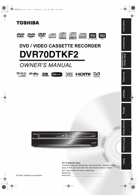 TOSHIBA VDR70 (DVR70DTKF2) Anleitung Englisch