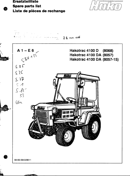 Baixar HAKO Hakotrac 4100 DA (8057-15) Lista de peças Inglês (45 Pages) 39.90 EUR