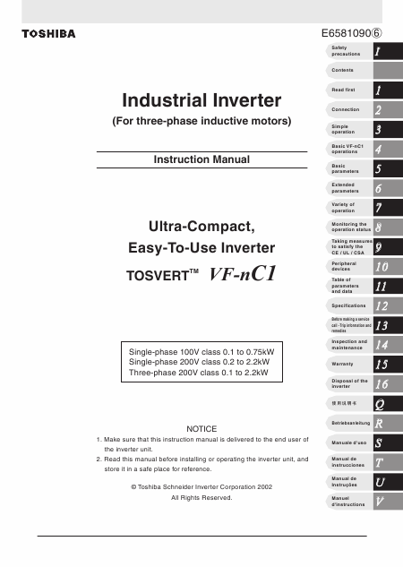 Descargar TOSHIBA TOSVERT VF-nC1 Guía del usuario Inglés (144 Páginas) 39.90 EUR