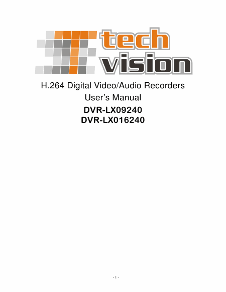 TECHVISION DVR-LX09240 Mode emploi Anglais