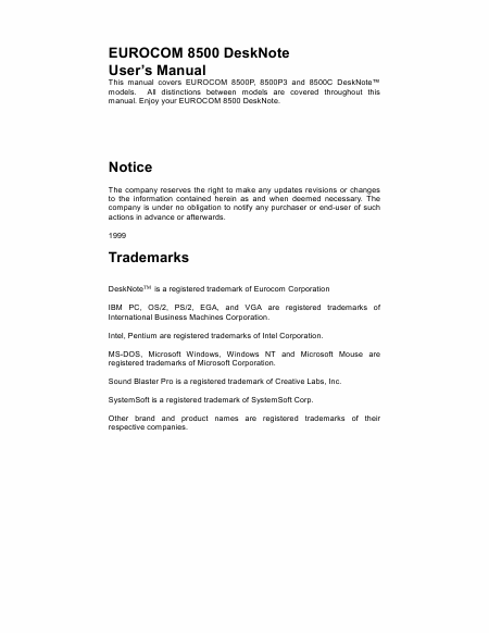 Download EUROCOM 8500 / 8500P3 / 8500C DeskNote Anleitung Englisch (108 Seiten) 12.90 EUR