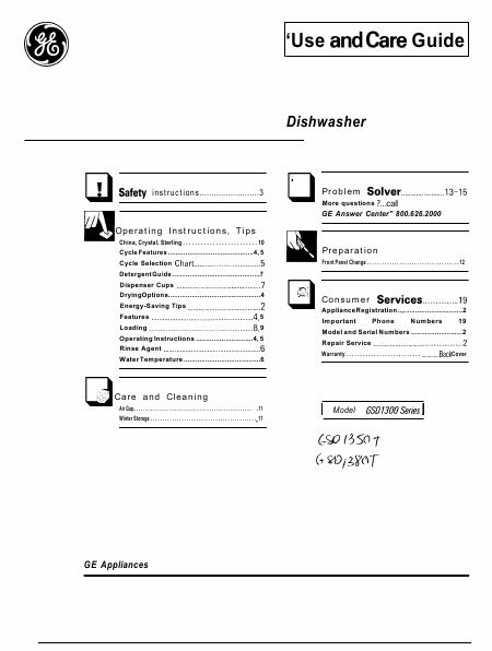 GE (GENERAL ELECTRIC) GSD1380T Users Guide English