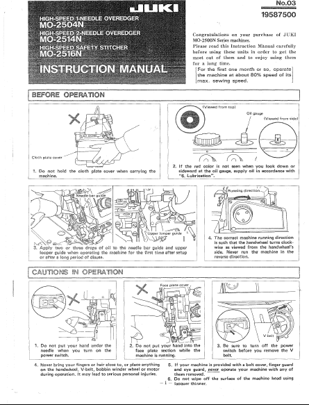 Telecharger JUKI MO-2516N Mode emploi Anglais (12 Pages) 15.90 EUR