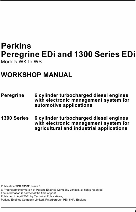 Scaricare PERKINS Peregrine EDi Manuale di servizio Inglese (264 Pagine) 39.90 EUR