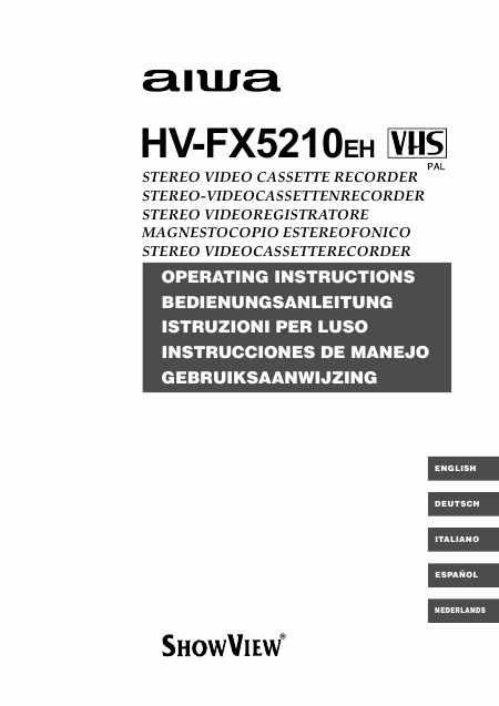 AIWA HV-FX5210EH (HVFX5210EH) Istruzione Inglese