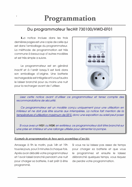TECHIT 730100 HWD-EF01 Users Guide French