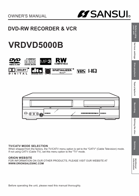 Telecharger SANSUI VRDVD 5000 B (VRDVD5000B) Mode emploi Anglais (88 Pages) 39.90 EUR