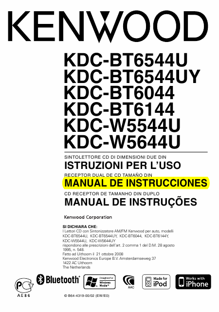Scaricare KENWOOD KDC-BT6544U Istruzione Spagnolo (47 Pagine) 12.90 EUR