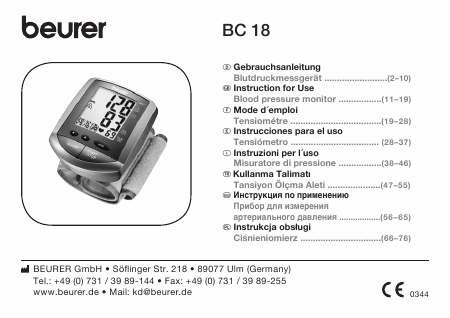 BEURER BC 18 (BC18) Istruzione Spagnolo