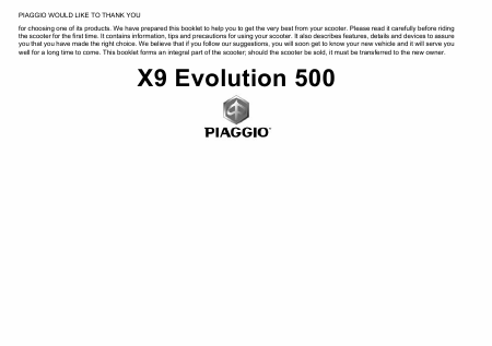 Scaricare PIAGGIO X9 Evolution 500 (2007) Istruzione Inglese (126 Pagine) 15.90 EUR